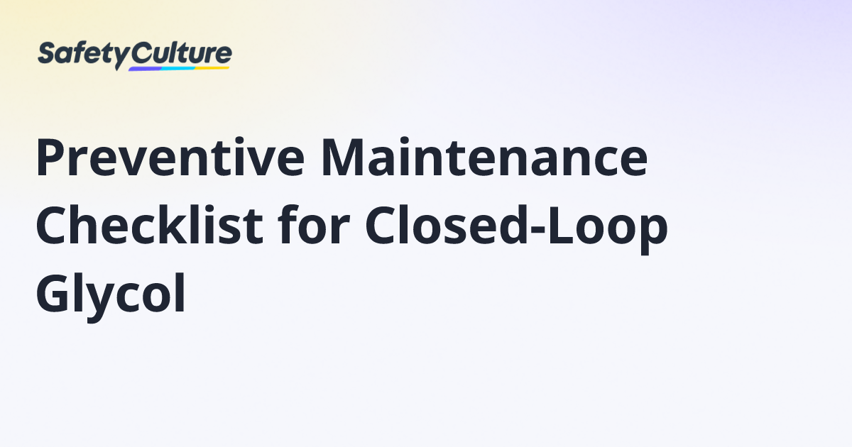 Preventive Maintenance Checklist for Closed-Loop Glycol | Free Template