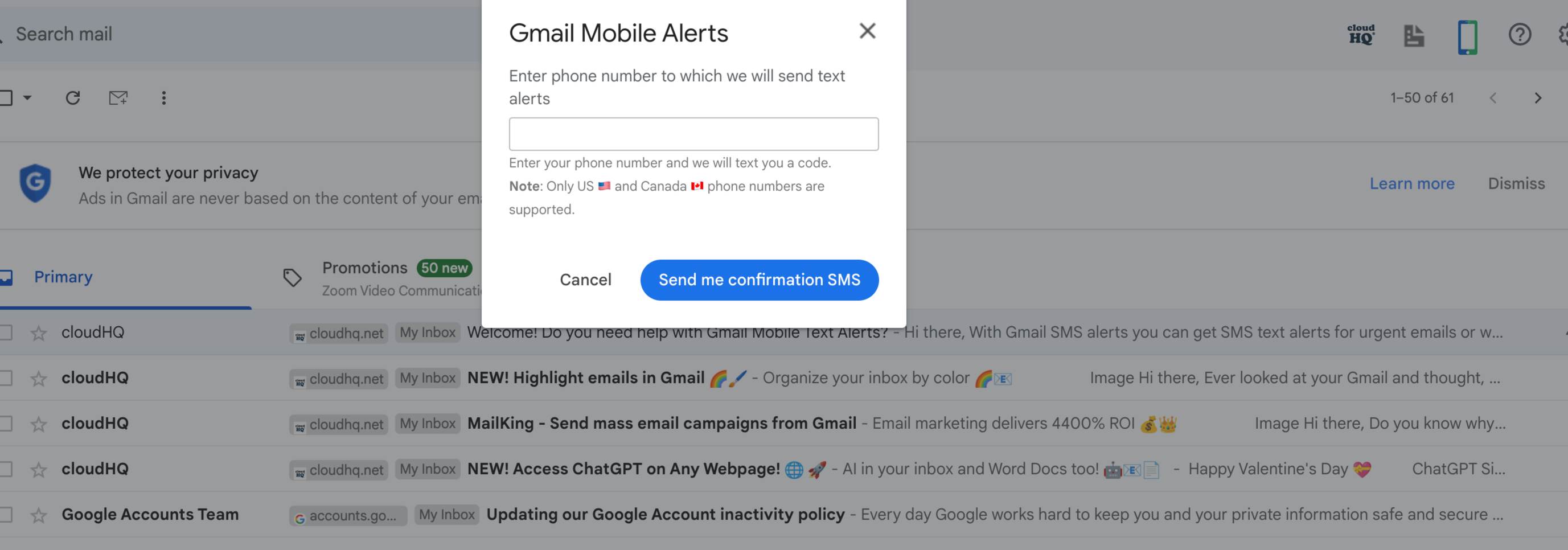 Getting Started with Mobile Text Alerts for Gmail – cloudHQ Support