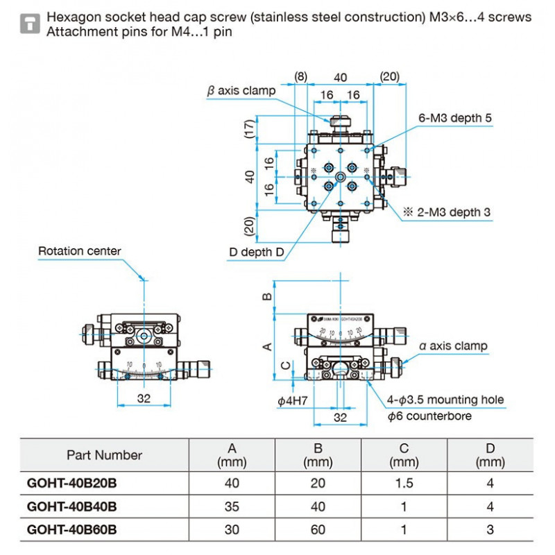 GOHT-60B - αβ軸ガイド一体型ゴニオステージ (GOHT-B) - ゴニオ - 手動ステージ