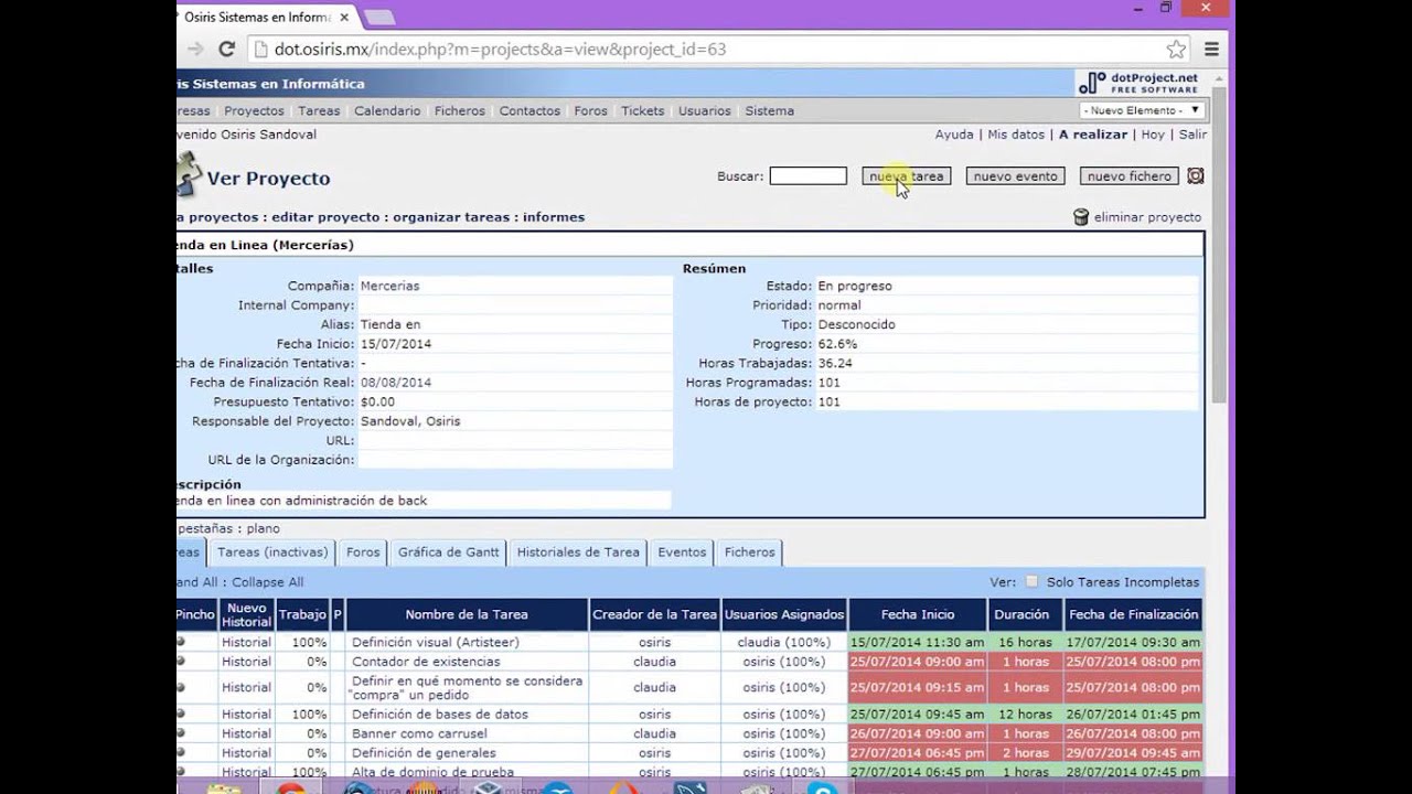 Tutorial de uso - dotProject Parte 1 - YouTube