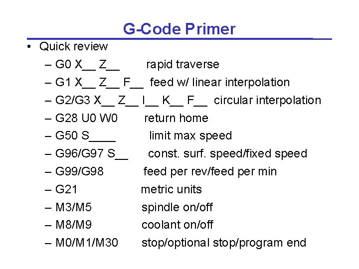 G-Codes and M-Functions - Turning: © Peter Smid CNC Programming ...