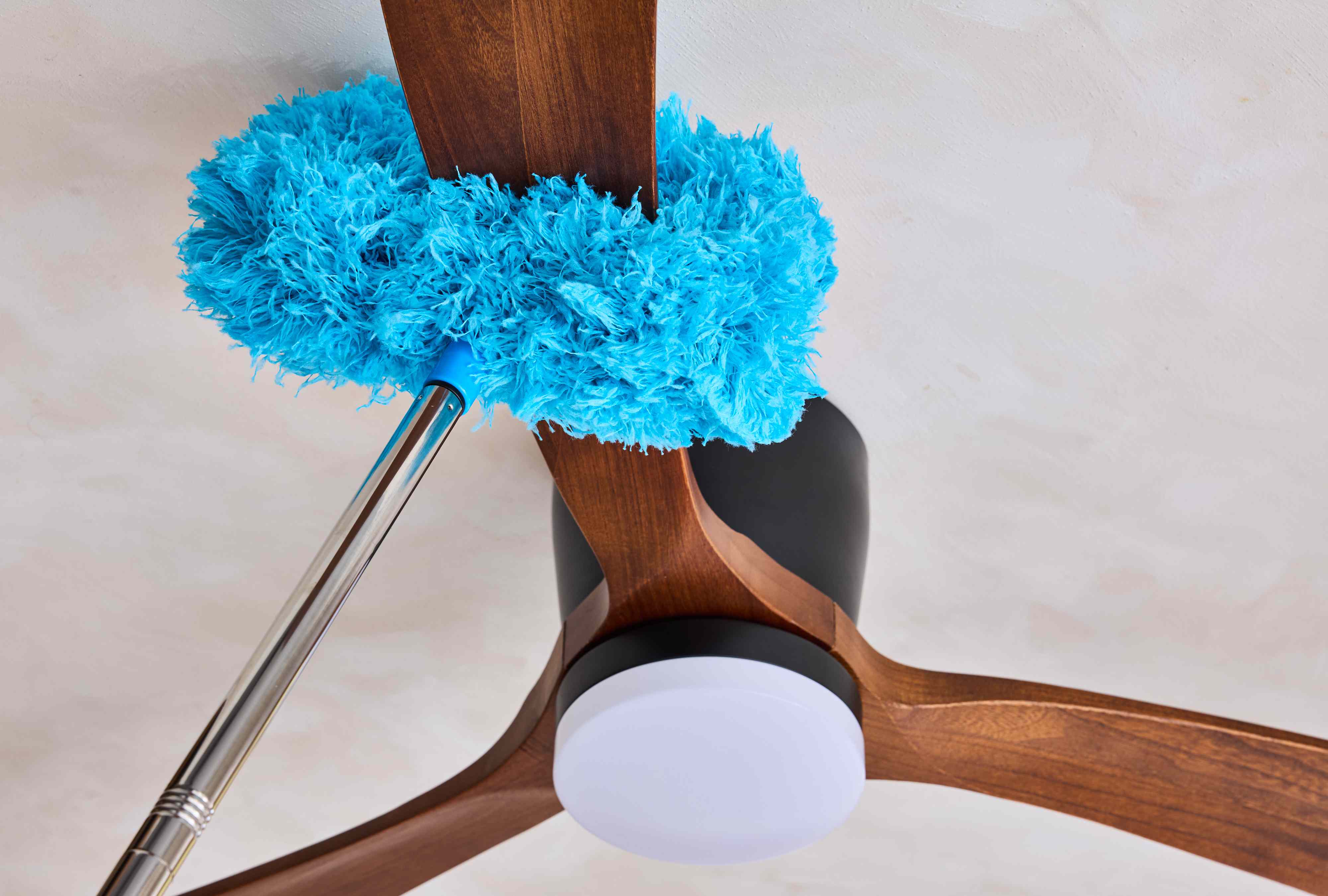 How to clean a too-high ceiling fan without busting out the ladder for help