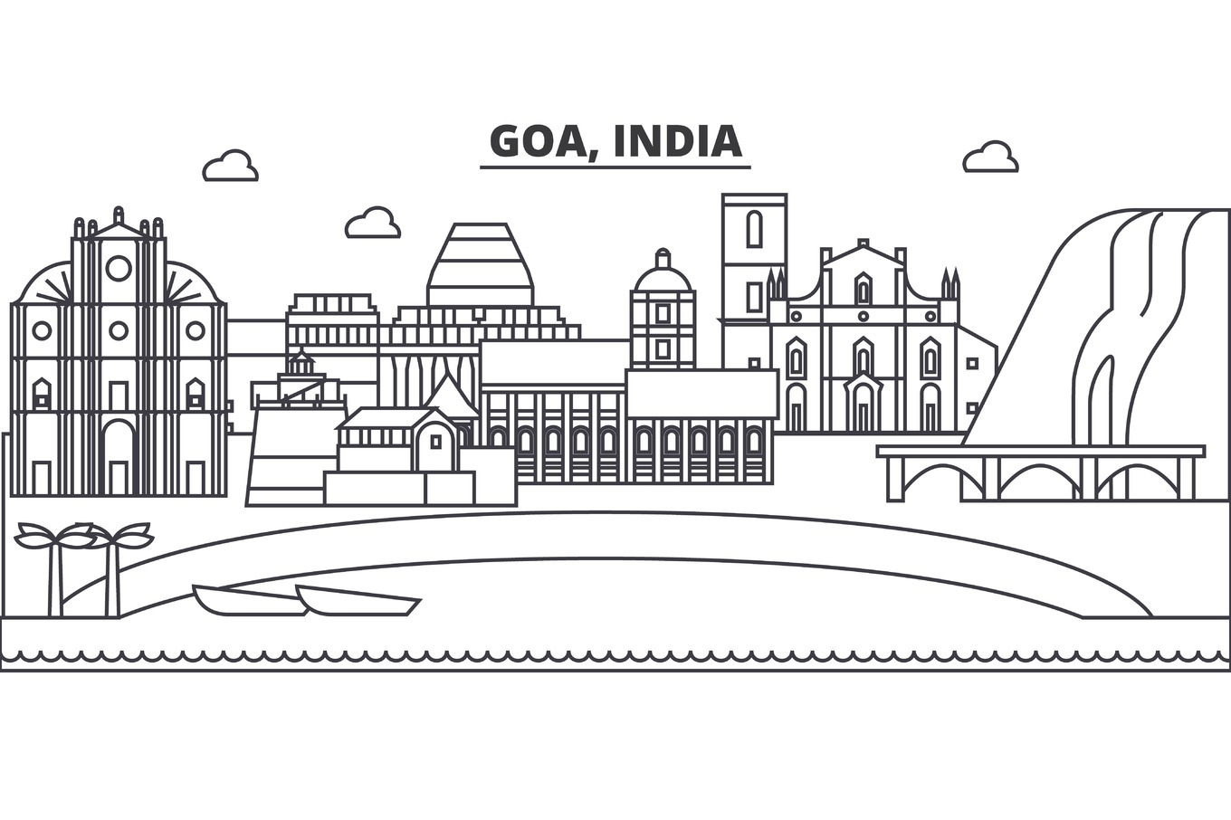 Goa Skyline India Vector Illustration Linear Style, Vectors | GraphicRiver