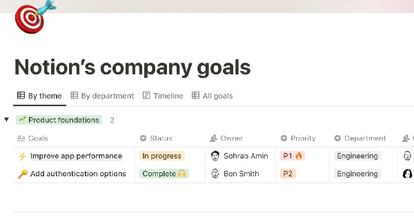 Notion's company goals template: a Notion template created by Notion.