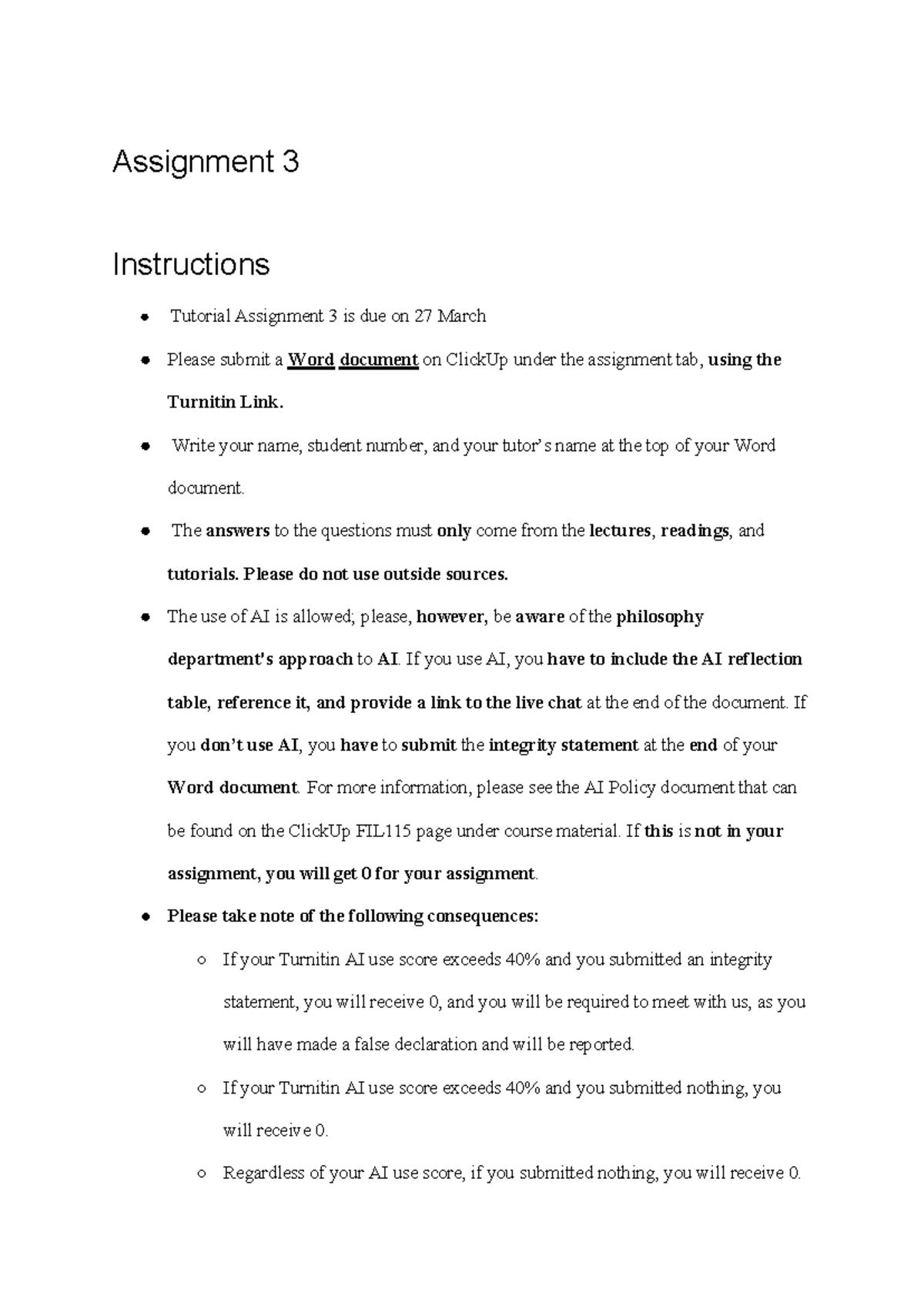 FIL 155 Assignment 3 Instructions & Submission Guidelines - Studocu