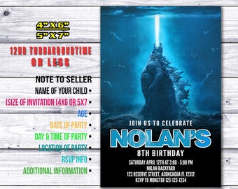 Godzilla Godzilla Birthday Godzilla Invitation King of - Etsy