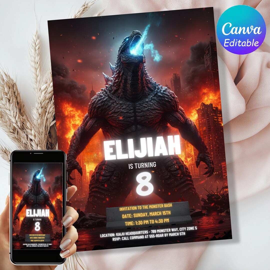 EDITABLE Godzilla Birthday Party Invite, Godzilla Invitation, Birthday ...