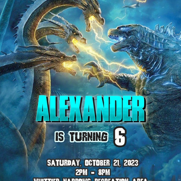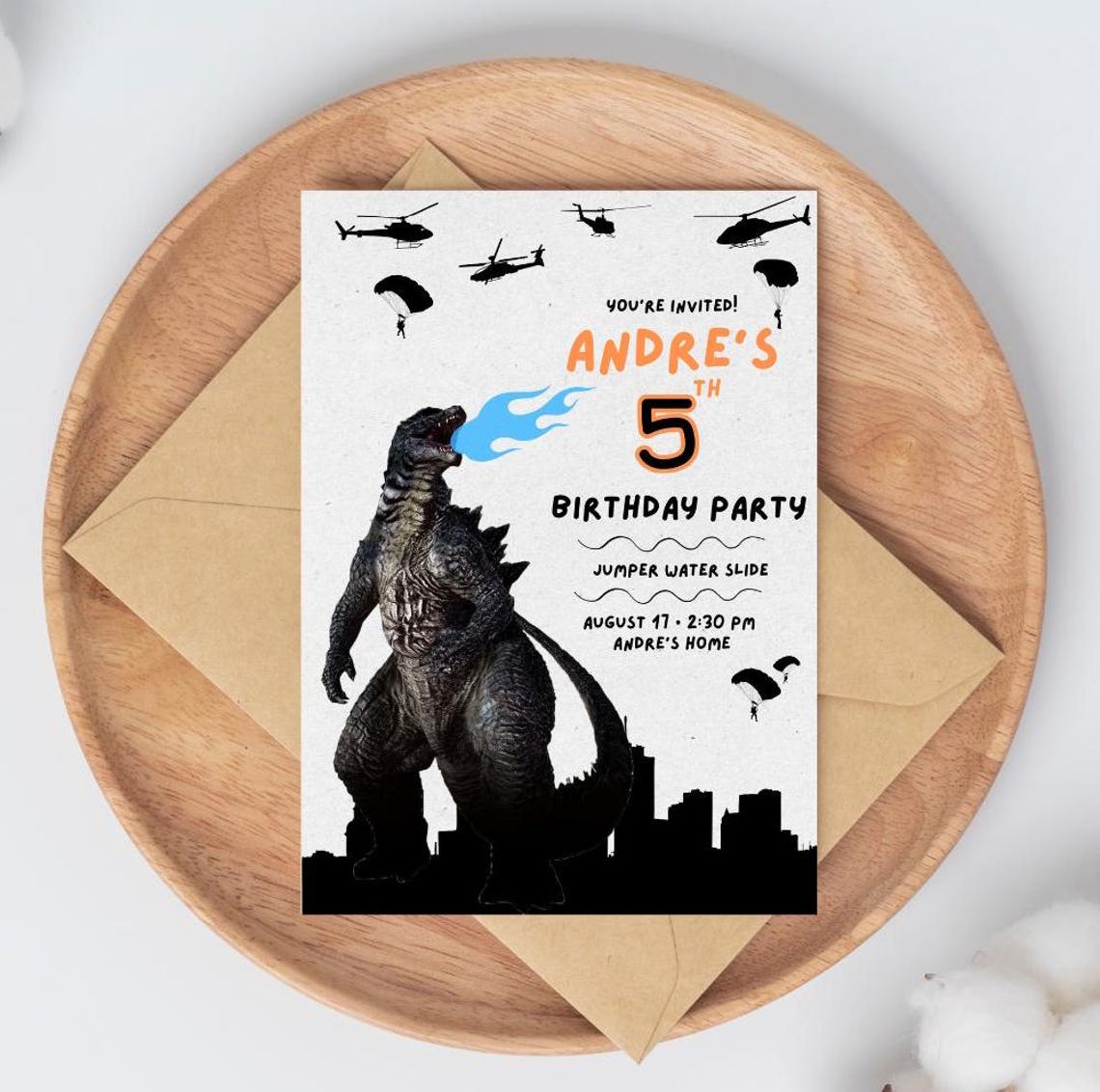 Godzilla Birthday Invitation, Godzilla Theme Party Invite, Digital ...