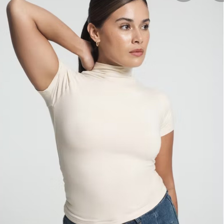 GOENA Malika Mock Neck Short Sleeve Top in Stone size S, Fesyen Wanita ...
