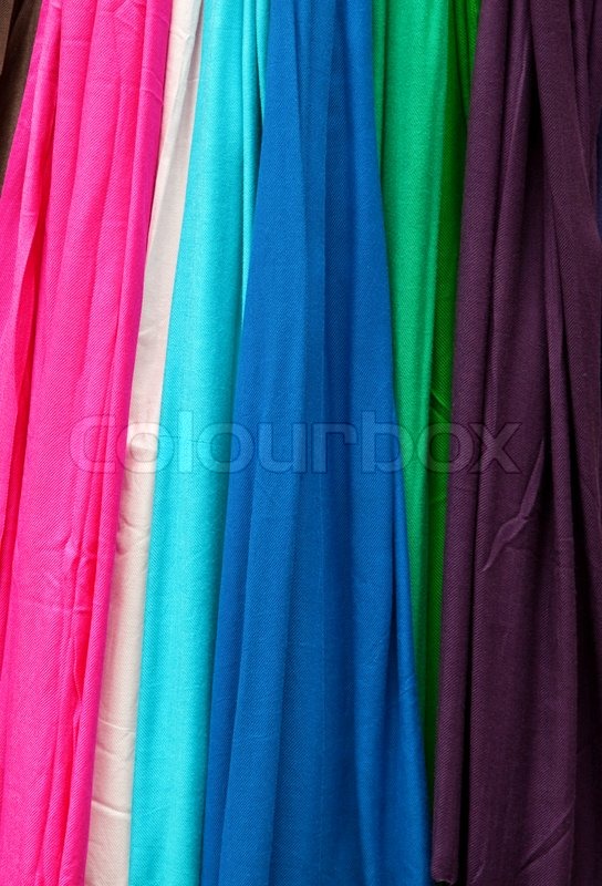 Colorful fabric samples in the shop | Stock image | Colourbox