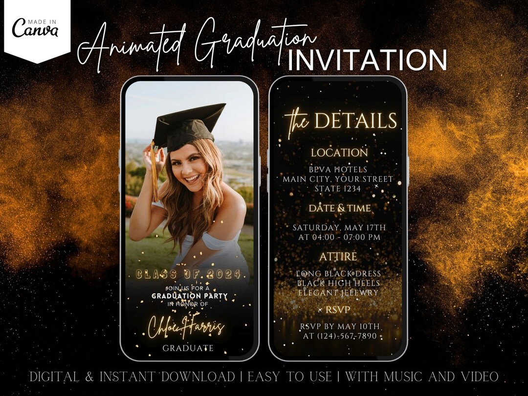 Gold Graduation Invitation Template: Animated Photo Invite (digital ...