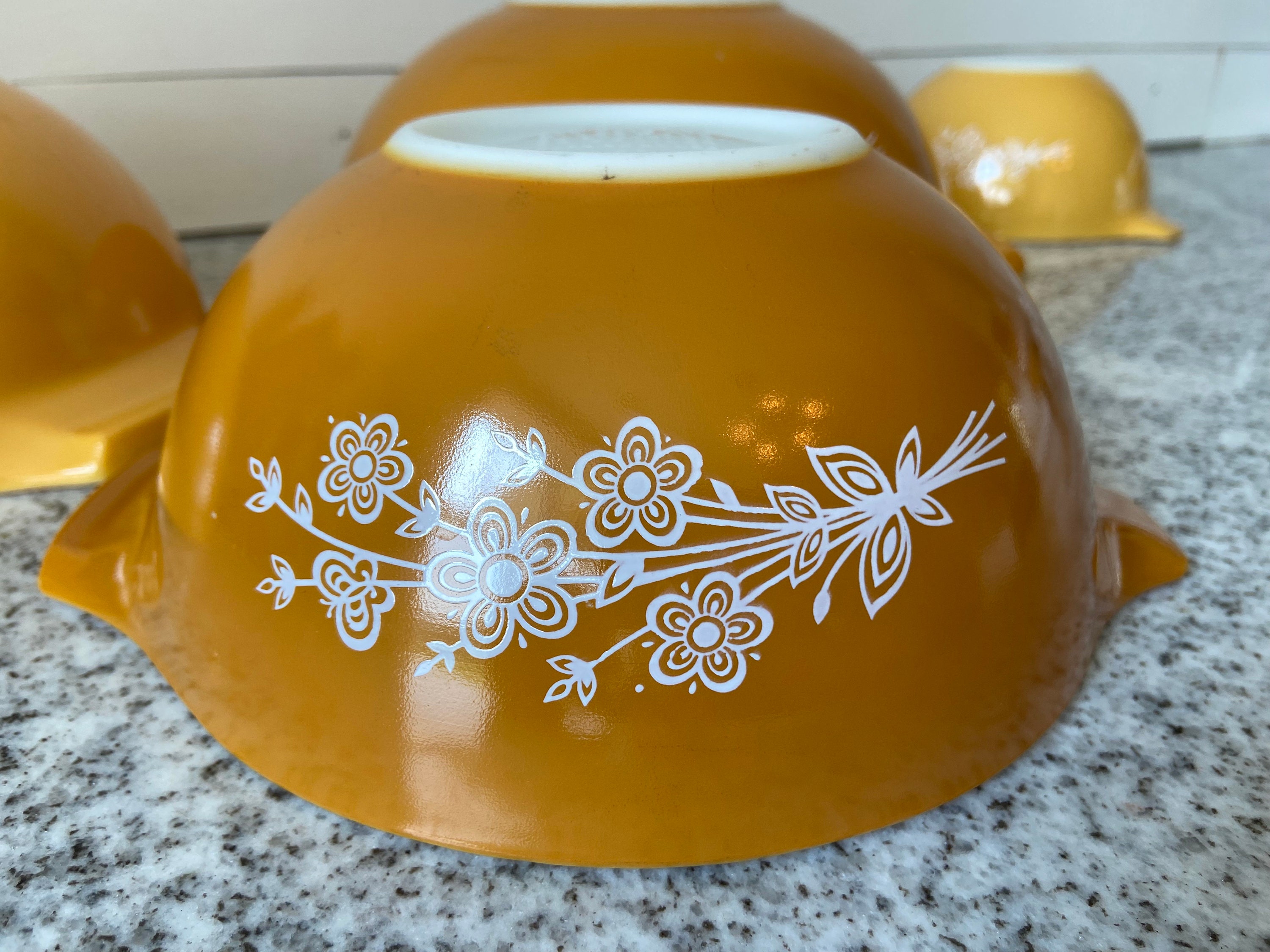 Vintage Pyrex butterfly gold nesting bowls set 3 1970 | Etsy