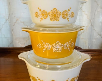 Vintage Pyrex Butterfly Gold Pattern Set of Three Small - Etsy