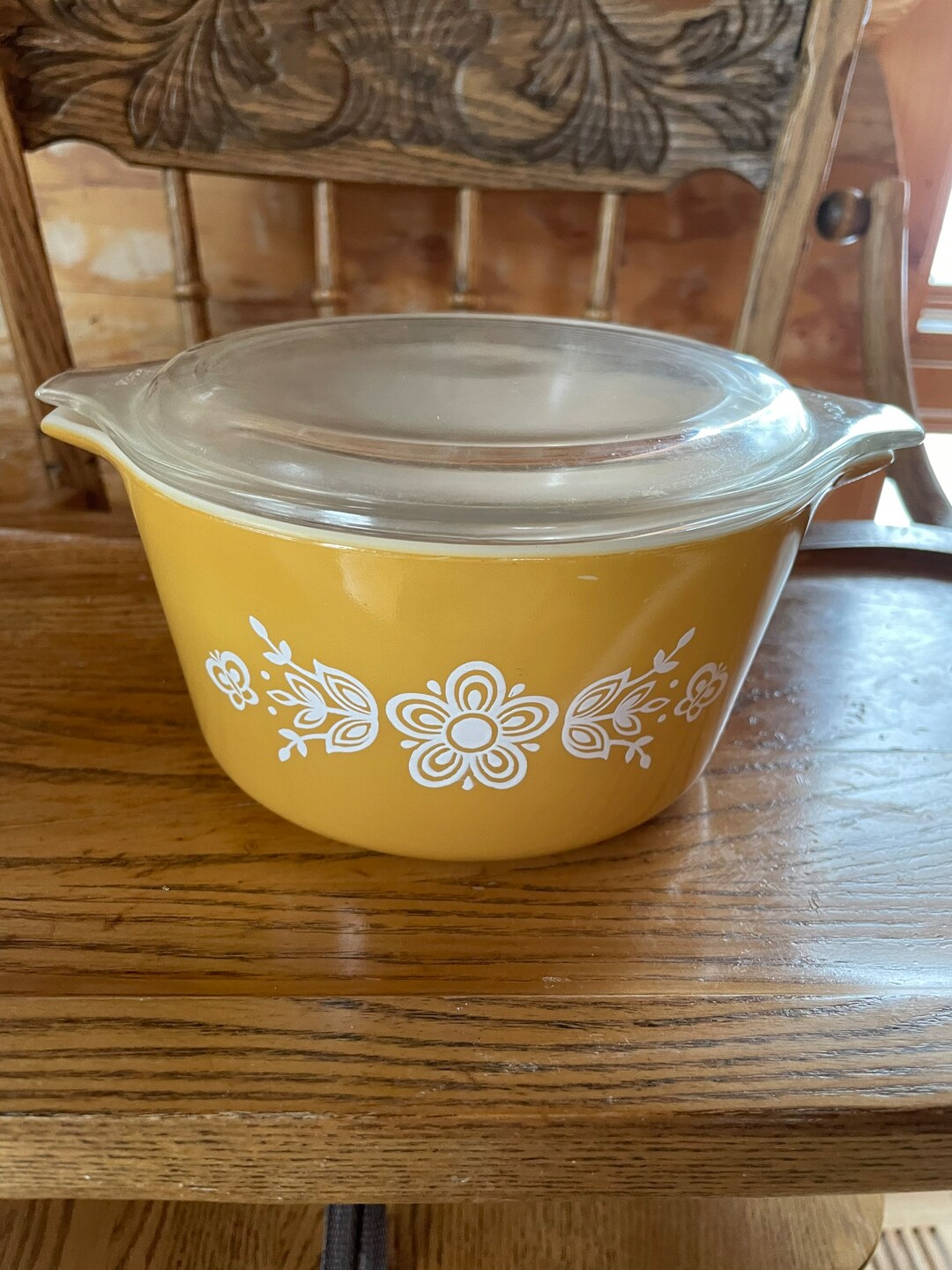 Pyrex Butterfly Gold 1 1/2 quart Casserole Dish with Lid, Vintage 1970s ...