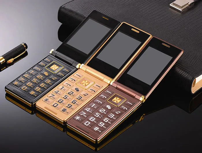 Best Original Gold Flip Double Display Cell Phones Metal Body Senior ...