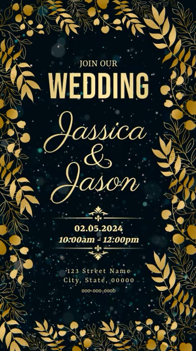 Elegant Luxury Golden Wedding Invitation Template Edit Online - Seapik