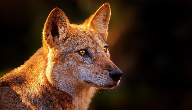 Premium Photo | A golden wolf with a black background and yellow eyes.