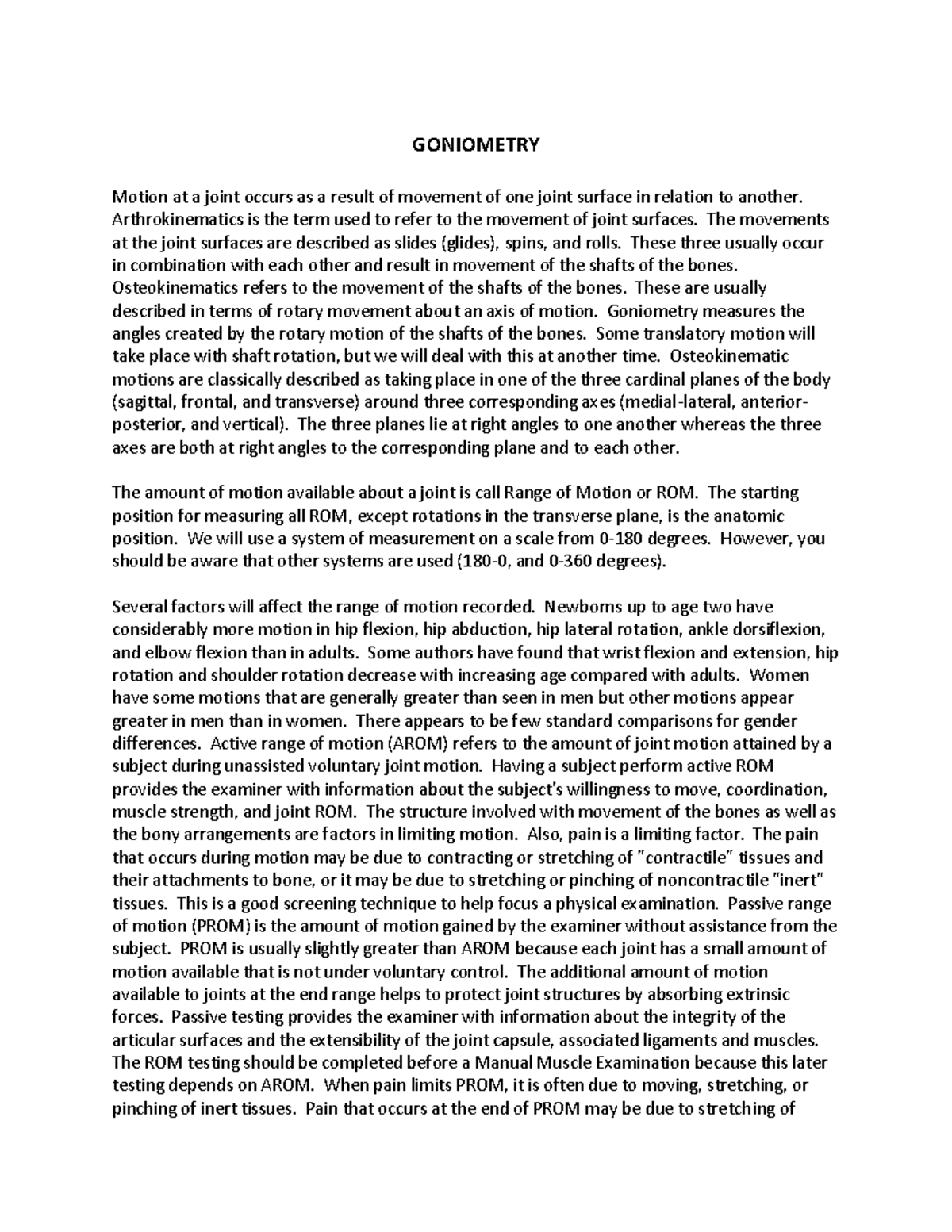 Goniometry Handbook for Students & Clinicians | PDF | Anatomical Terms ...