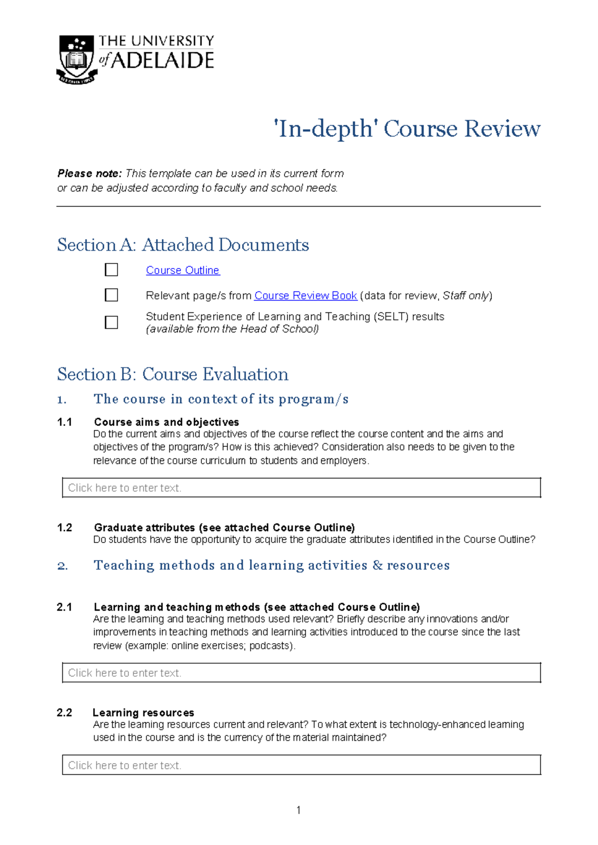 Course Review Template