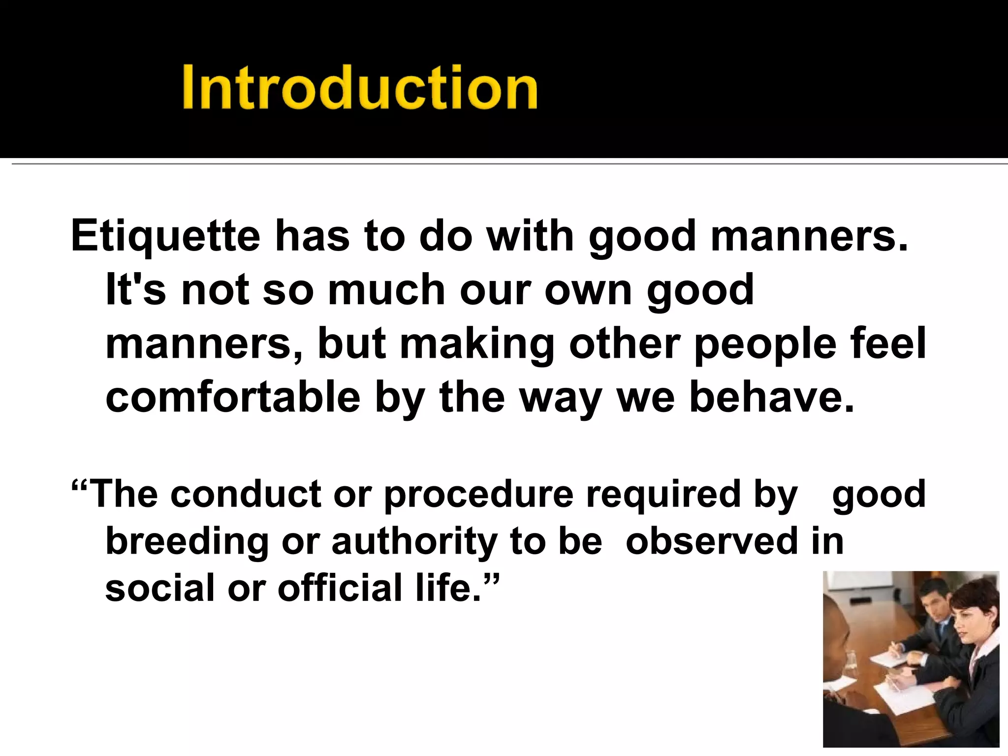 Etiquette and Good Manners - Etiquette and Good Manners Etiquette and ...