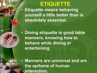 Etiquette, Good Manners and Social Grace | PPTX