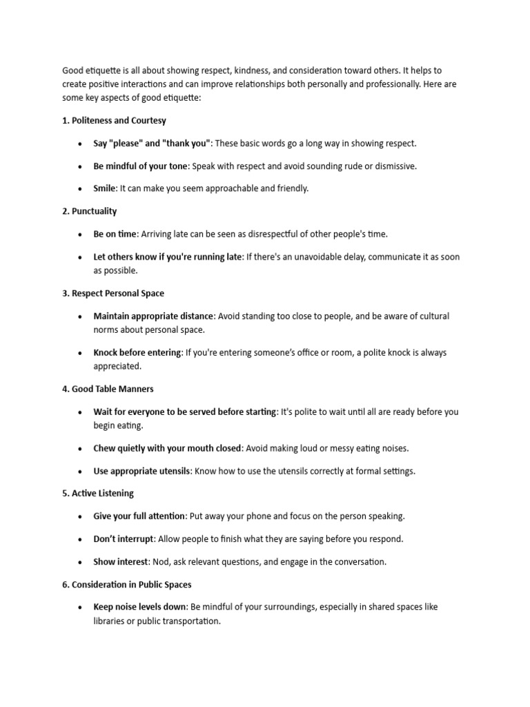 Good Etiquette Is All About Showing Respect | PDF | Etiquette | Human ...