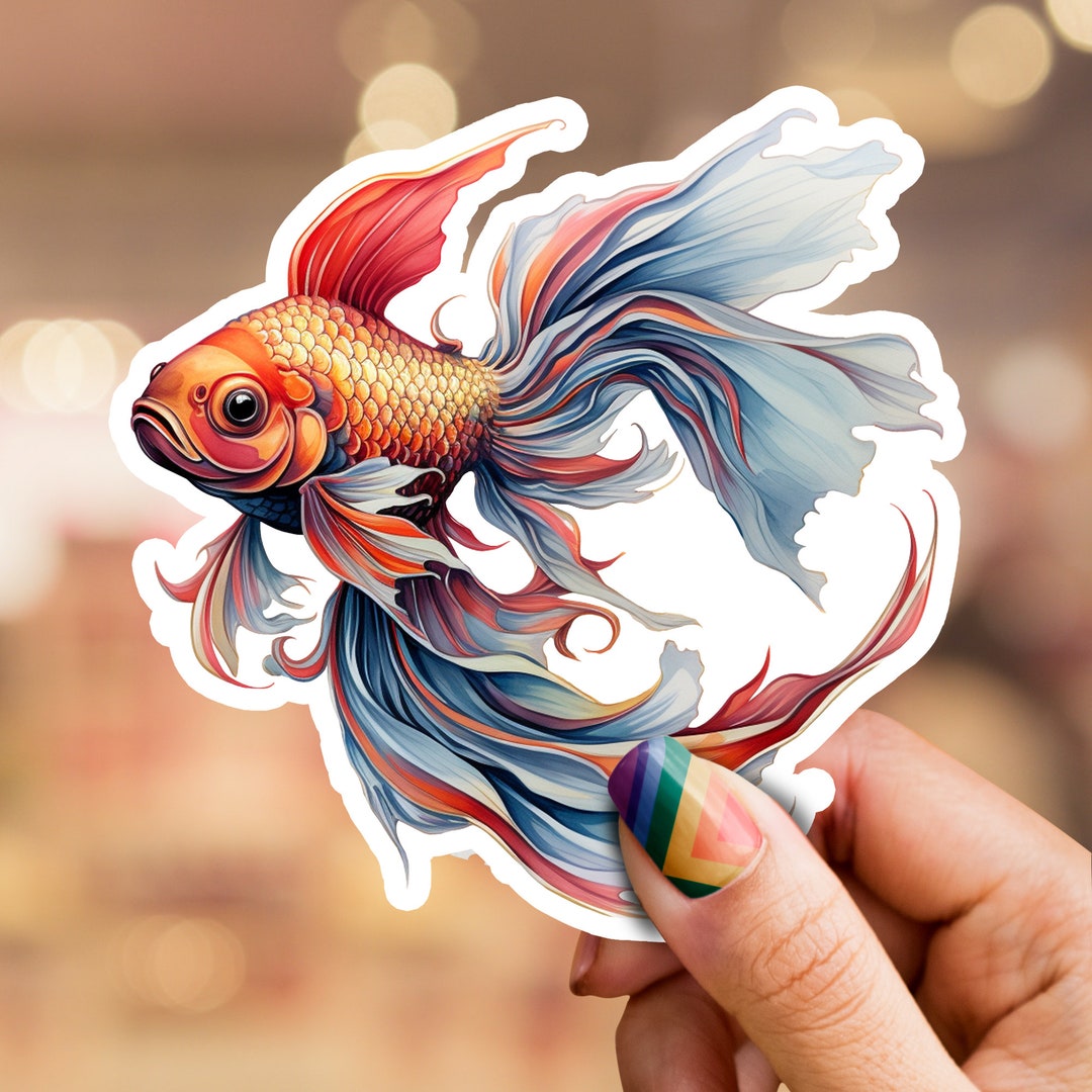 Goldfish Sticker, Fish Sticker, Vinyl Waterproof Pet Fantail Goldfish ...