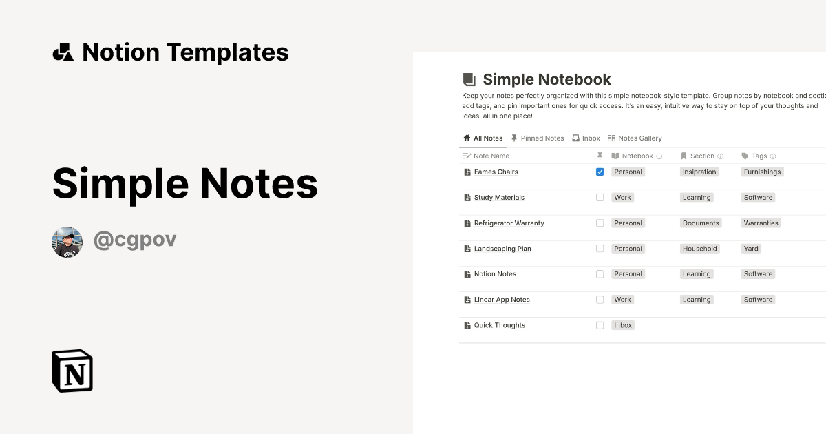 Simple Notes Template | Notion Marketplace