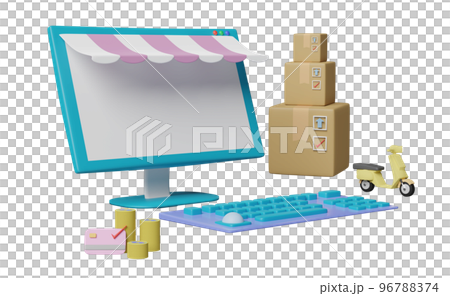 computer monitor with store front, goods box,... - Stock Illustration ...