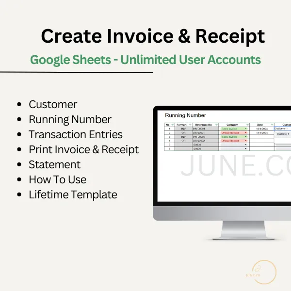 Create Invoice & Receipt - Google Sheet Template – June.co