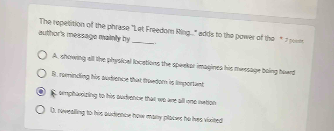 Solved: The repetition of the phrase “Let Freedom Ring...” adds to the ...