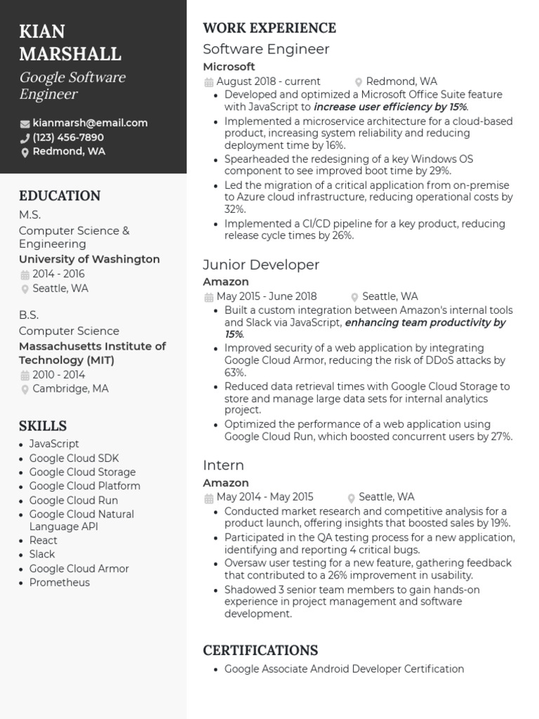 6 Google resume examples (+ tips on optimizing for Google) - IGotAnOffer