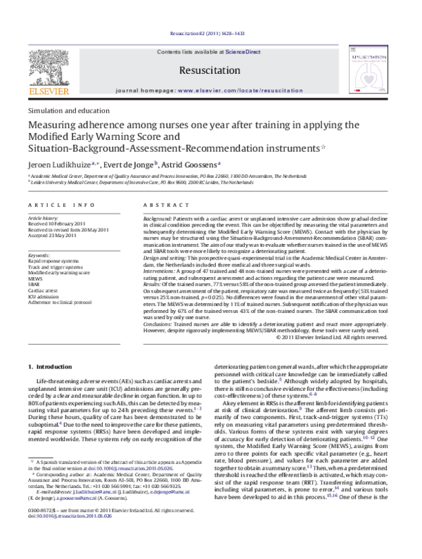 (PDF) Measuring adherence among nurses one year after training in ...