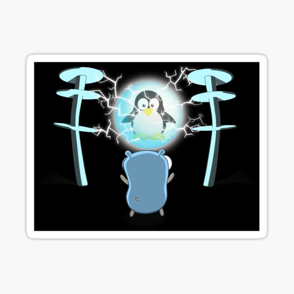 "The Go Gopher: Power to the Linux (Black)" Sticker by hellkni9ht ...