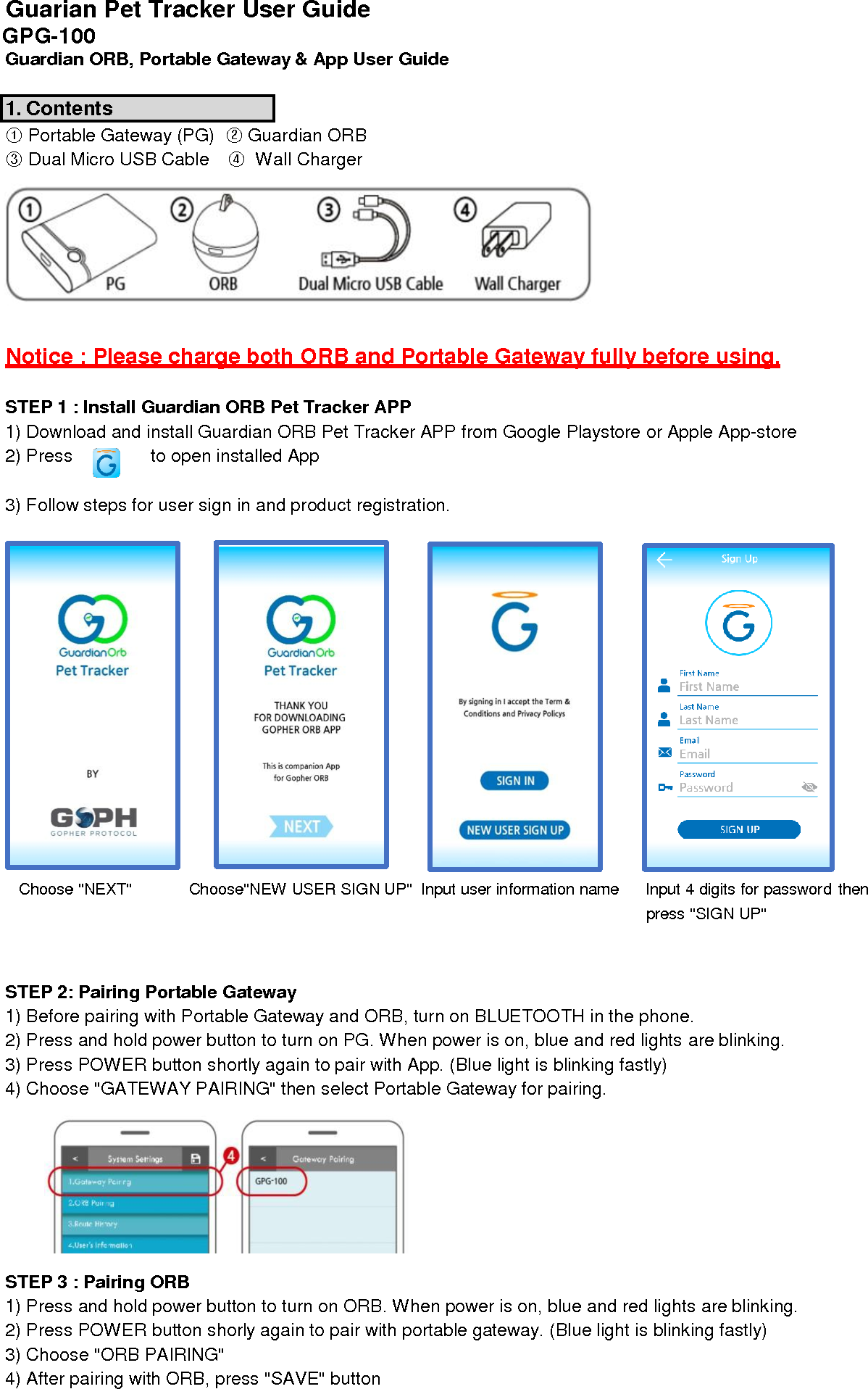 Gopher Protocol GPG-100 Guardian Pet Tracker User Manual