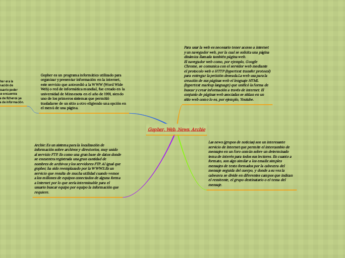 Gopher, Web, News, Archie - Mind Map