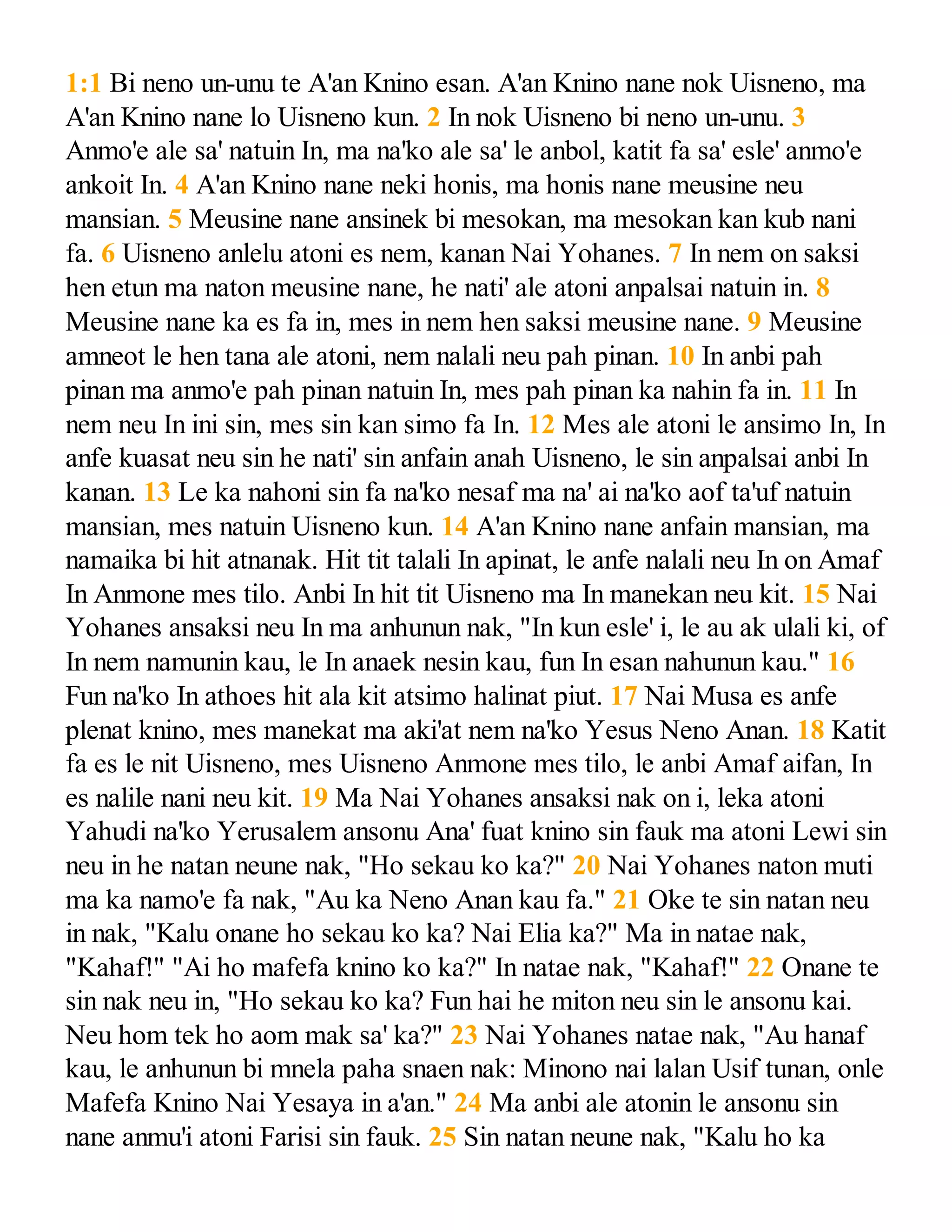 Timor dawan bible gospel of john | PDF