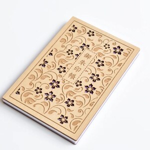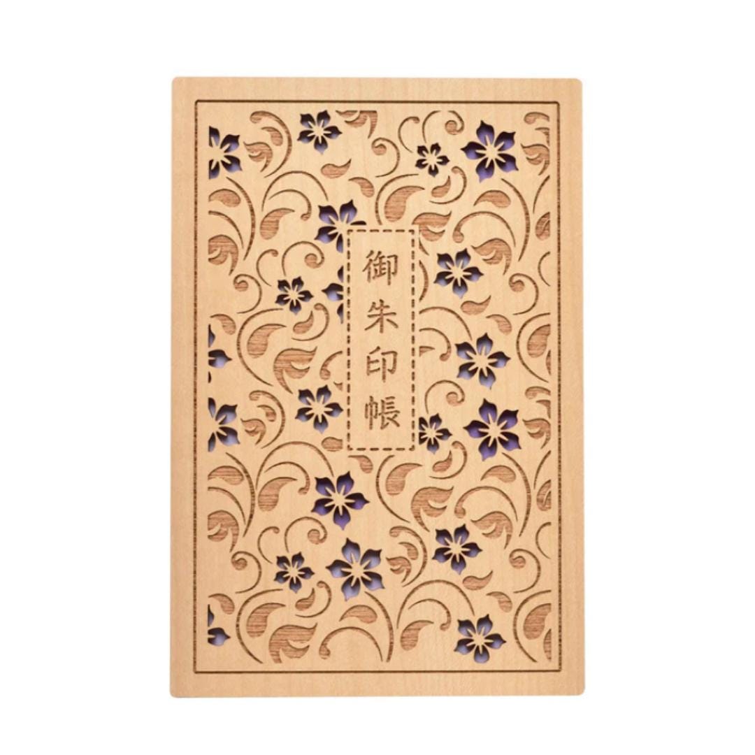 Japanese Goshuin Stamp Book Purple Flower Design Laser Cut Wooden Cover ...