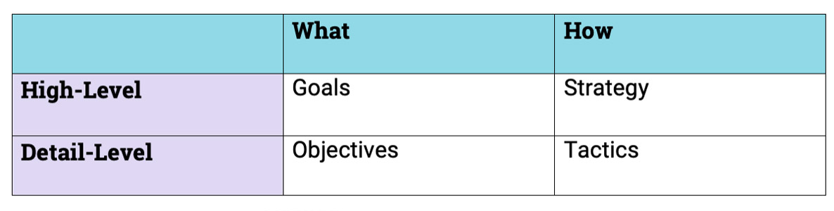 The Difference Between Goals, Objectives, Strategies, and Tactics