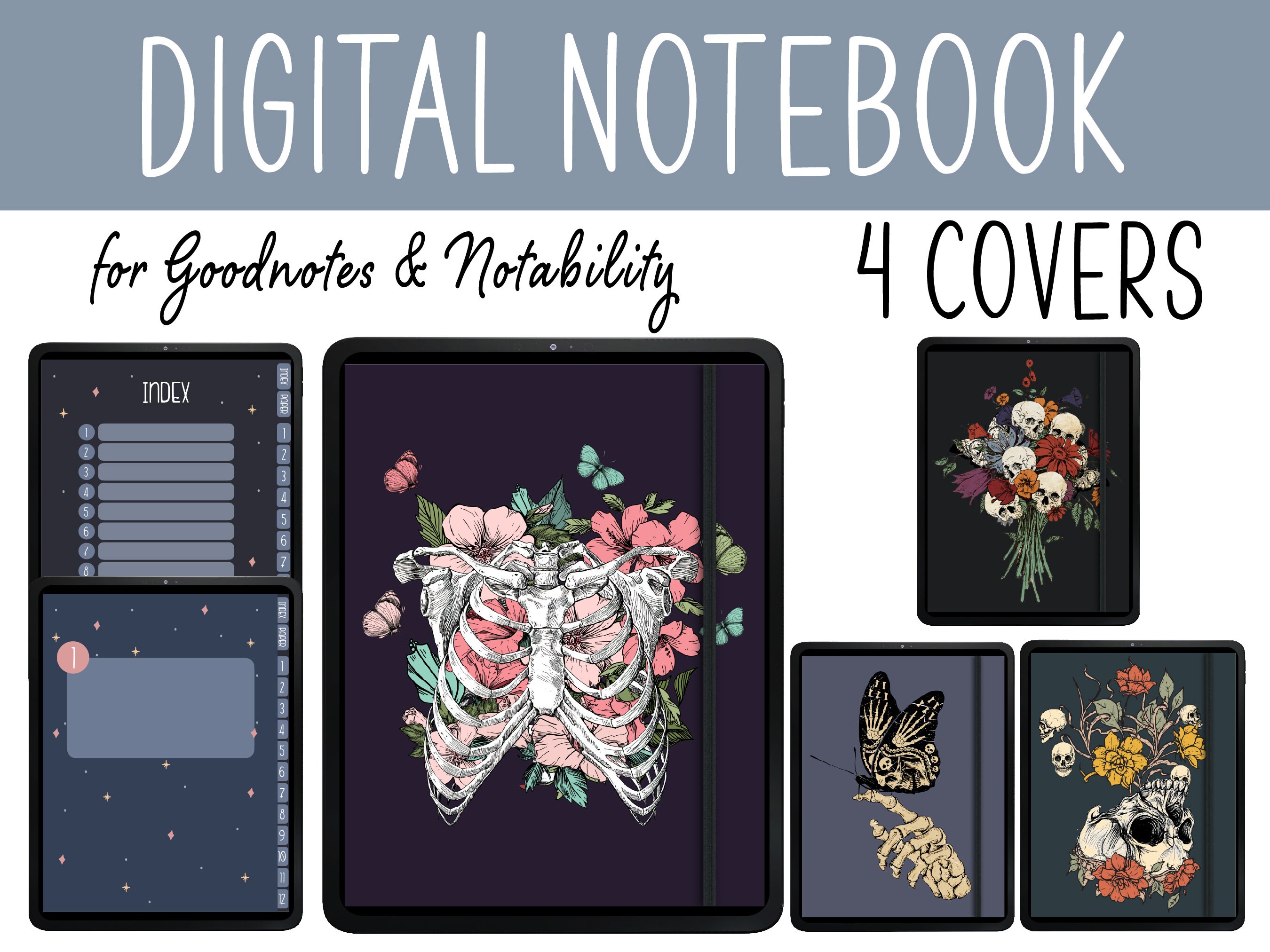 DIGITAL Notebook Goth, Dark Mode Digital Notebook Goodnotes, Notebook ...
