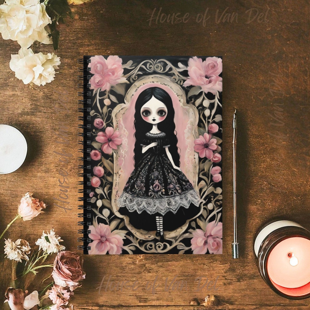 Gothic Beauty With Creepy Doll Spiral Notebook, Gothic Girl Notepad ...