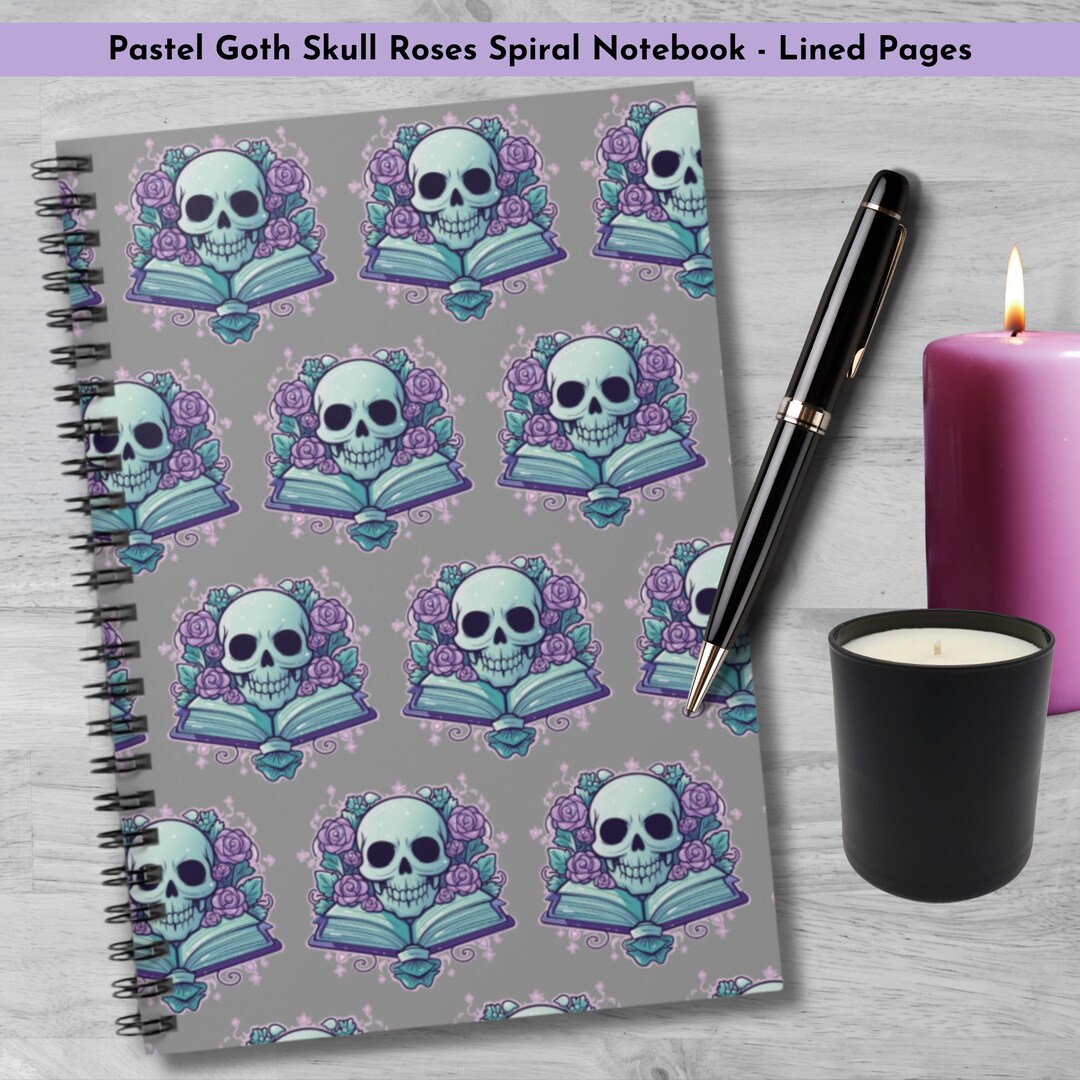 Pastel Goth Notebook Skull Rose Journal - Ruled Line Gray - Etsy