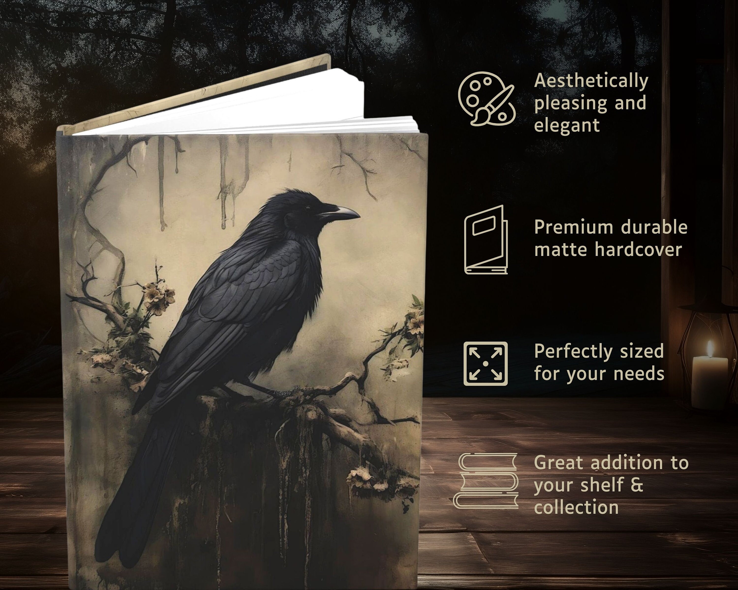 Gothic Raven Notebook Dark Academia Aesthetic Journal, Hardcover Matte ...