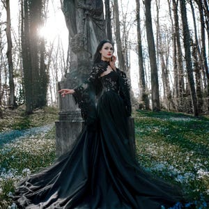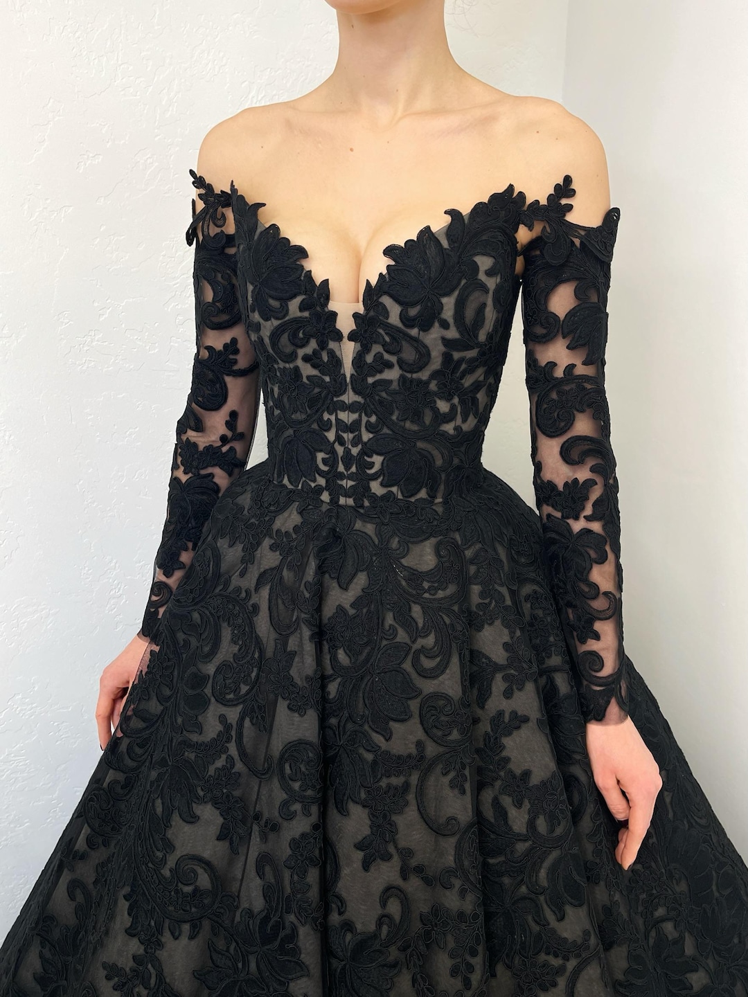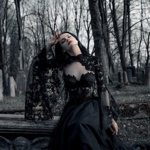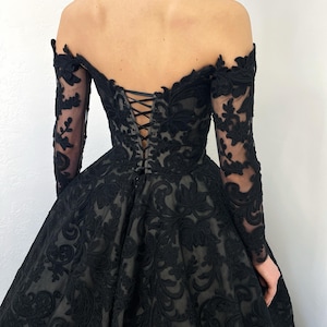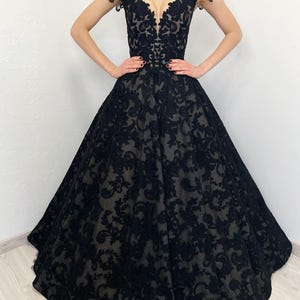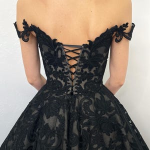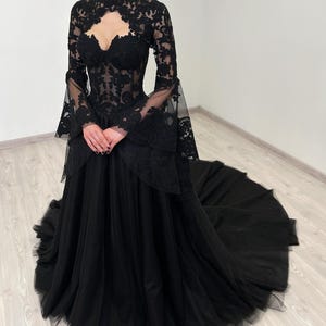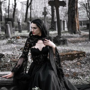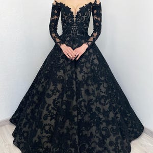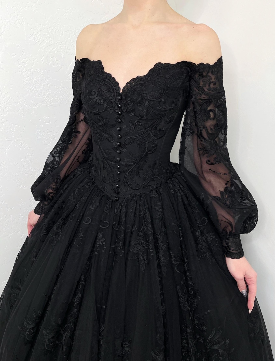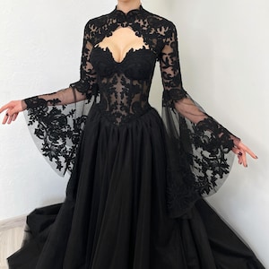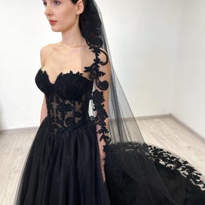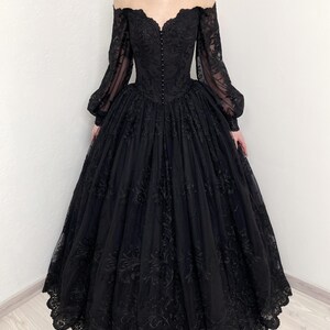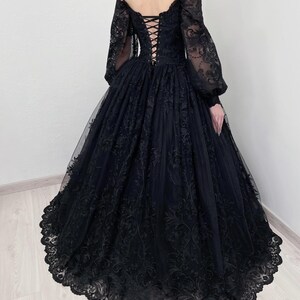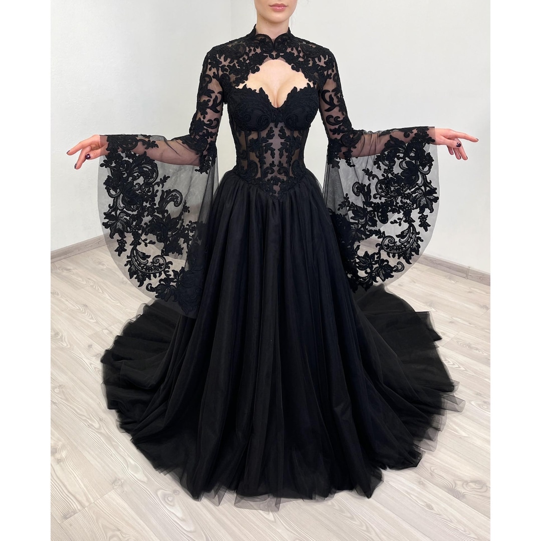 Black Basque Waist Gothic Wedding Dress, Vintage Style Lace Dress ...