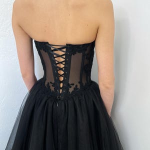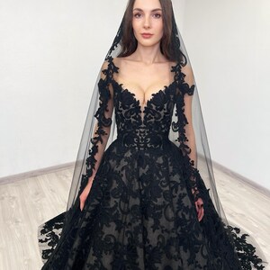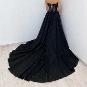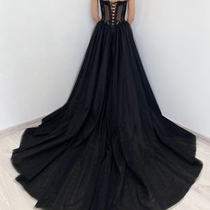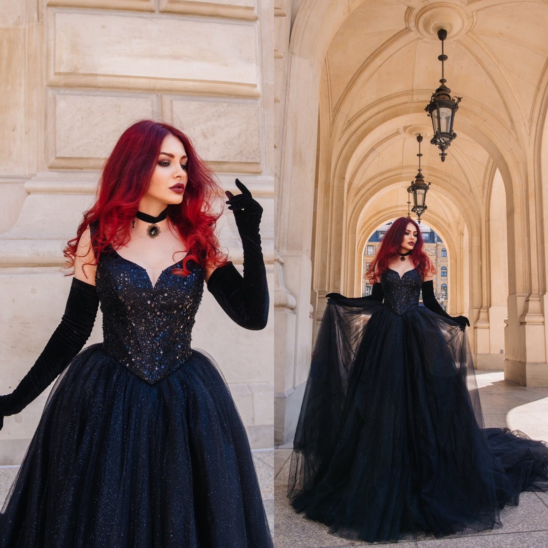 Sparkly Black Wedding Dress Tulle Ball Gown Gothic Alternative Basque ...