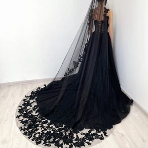 Goth Black Wedding Dress Corset W/ Basque Waist and Detachable Train ...