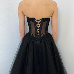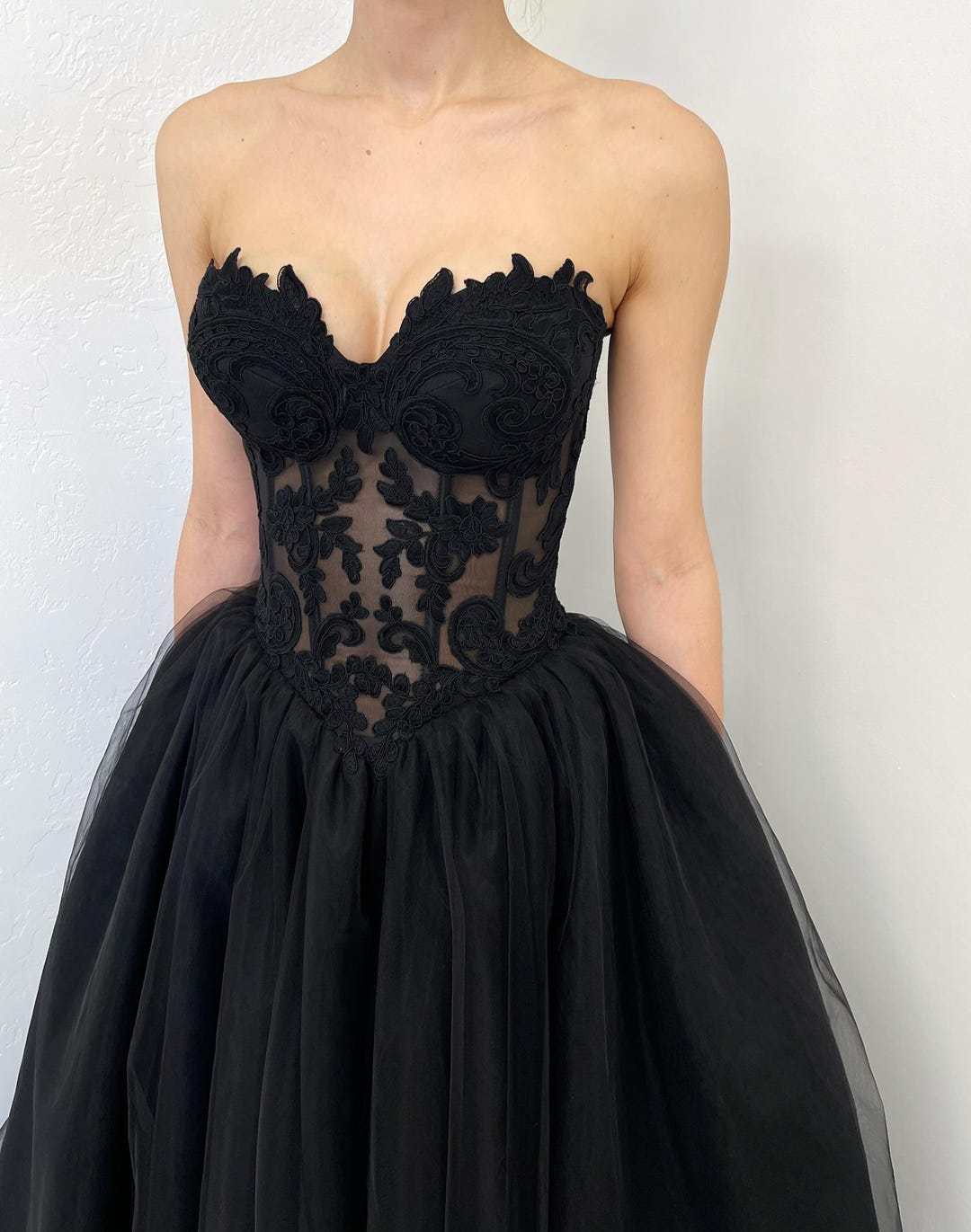 Black Gothic Sheer Basque Waist Corset Tulle Wedding Dress ...