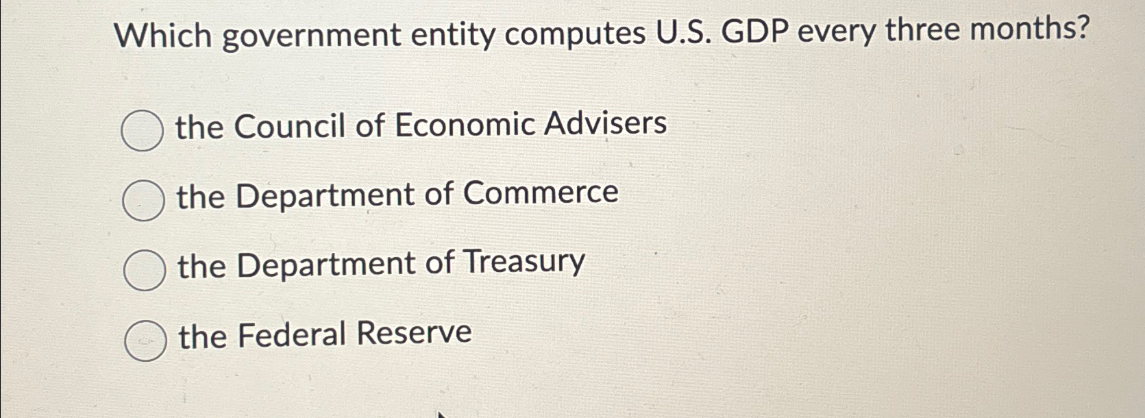 Solved Which government entity computes U.S. GDP every | Chegg.com
