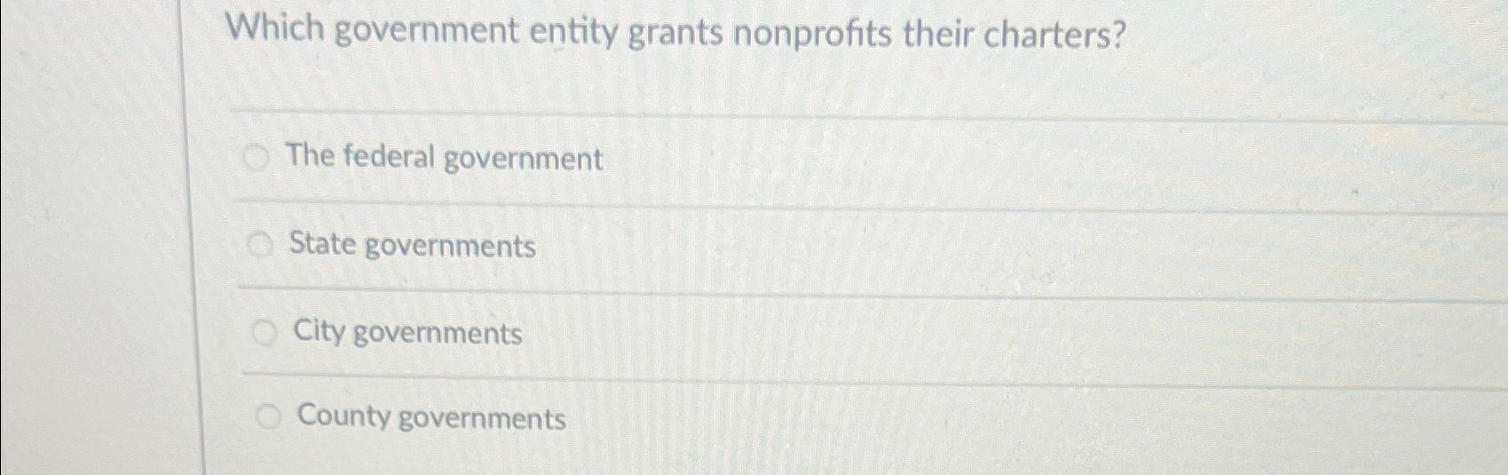 Solved Which government entity grants nonprofits their | Chegg.com