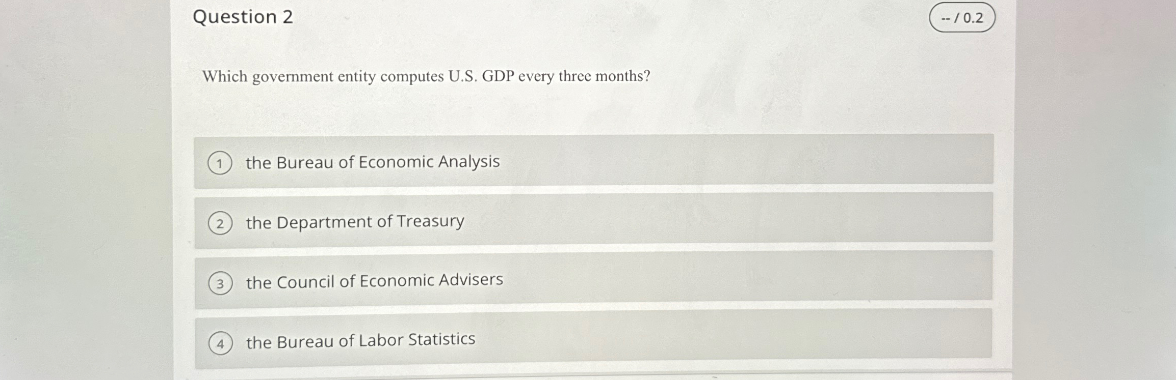 Solved Question 2Which government entity computes U.S. GDP | Chegg.com